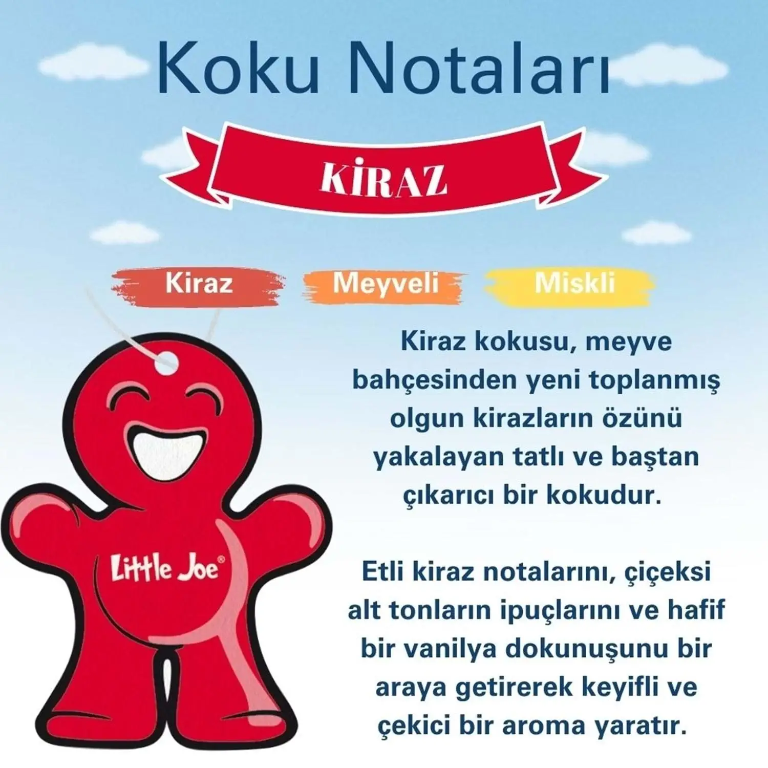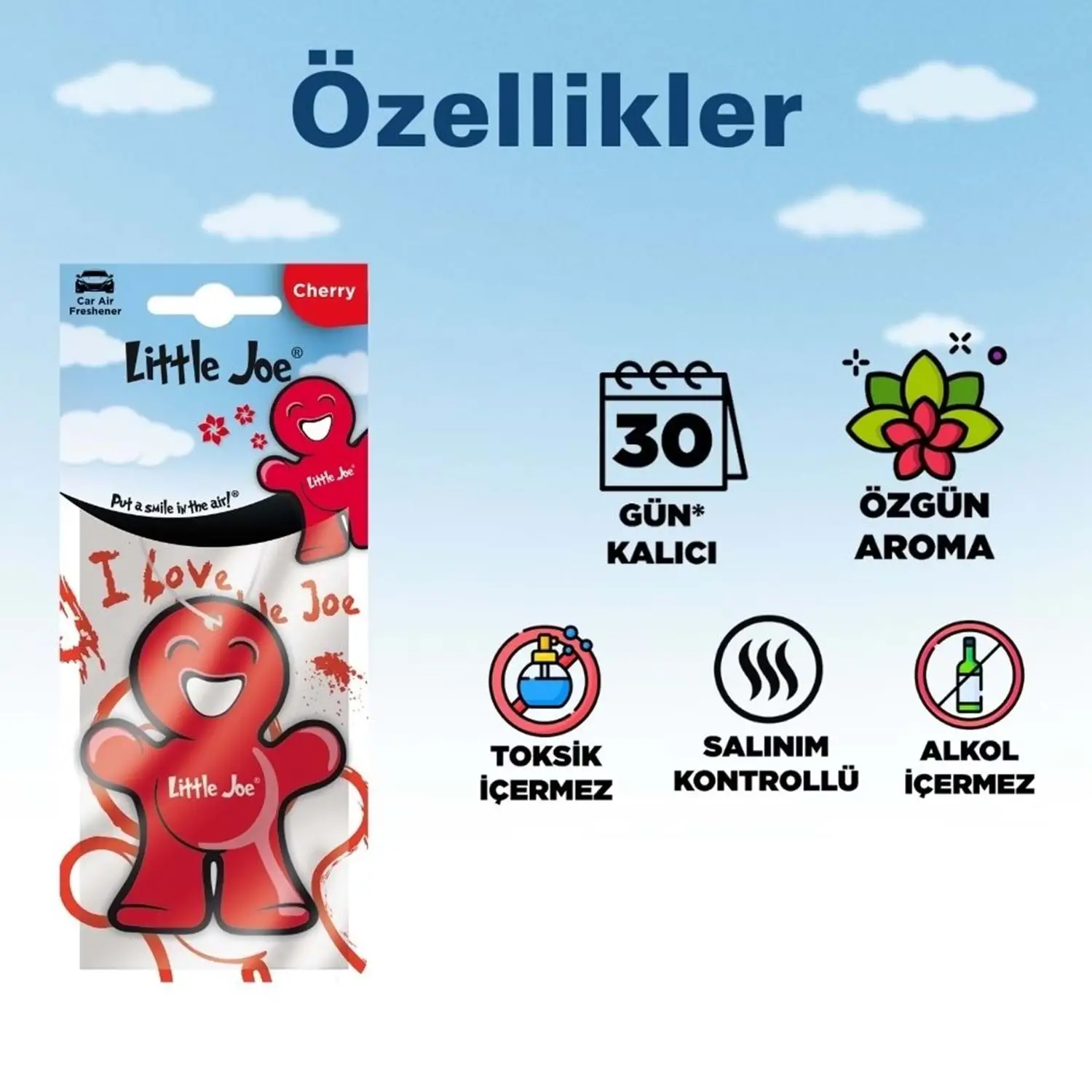 Little Joe kiraz kokusu, uzun süreli araç kokusu, meyvemsi oda kokusu, alkol içermeyen asma karton koku, tatlı kiraz kokusu.