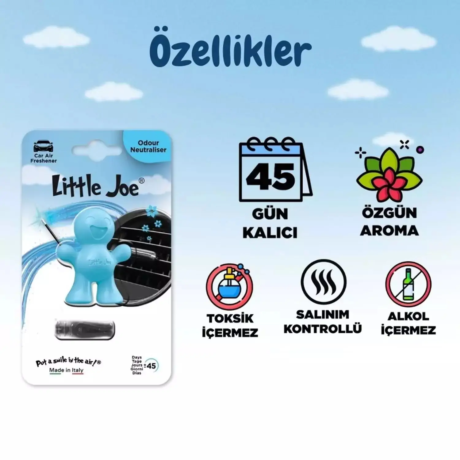 Little Joe Koku Giderici, kötü kokuları etkili bir şekilde nötralize ederek temiz ve ferah bir ortam yaratır. Eşsiz teknolojisiyle istenmeyen kokuları maskelemek yerine tamamen ortadan kaldırır. 45 güne kadar etkili olan bu ürün, ferahlık ve rahatlık arayanlar için ideal bir tercihtir. İtalya'nın üstün kalite anlayışıyla üretilmiş bu hava temizleyici, her ortamda fark yaratır.