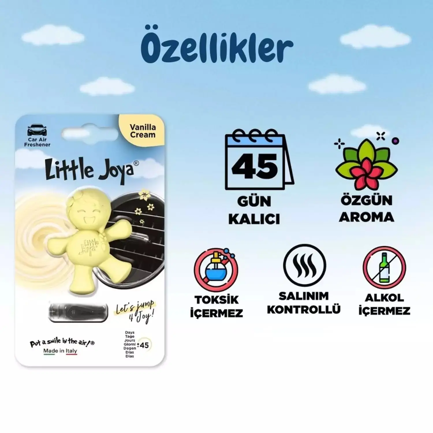 Little Joya Vanilya Kreması, vanilyanın yumuşak ve tatlı kokusunu bulunduğunuz her ortama taşır. Sıcak ve kremsi notalarıyla sizi huzurlu bir atmosferde dinlendirirken, 45 güne kadar etkili kalıcılığıyla ferahlık sunar. İtalya'nın kalite standartlarına uygun olarak üretilmiş bu ürün, tatlı ve nostaljik kokuların büyüsünü yaşamak isteyenler için mükemmel bir tercihtir.