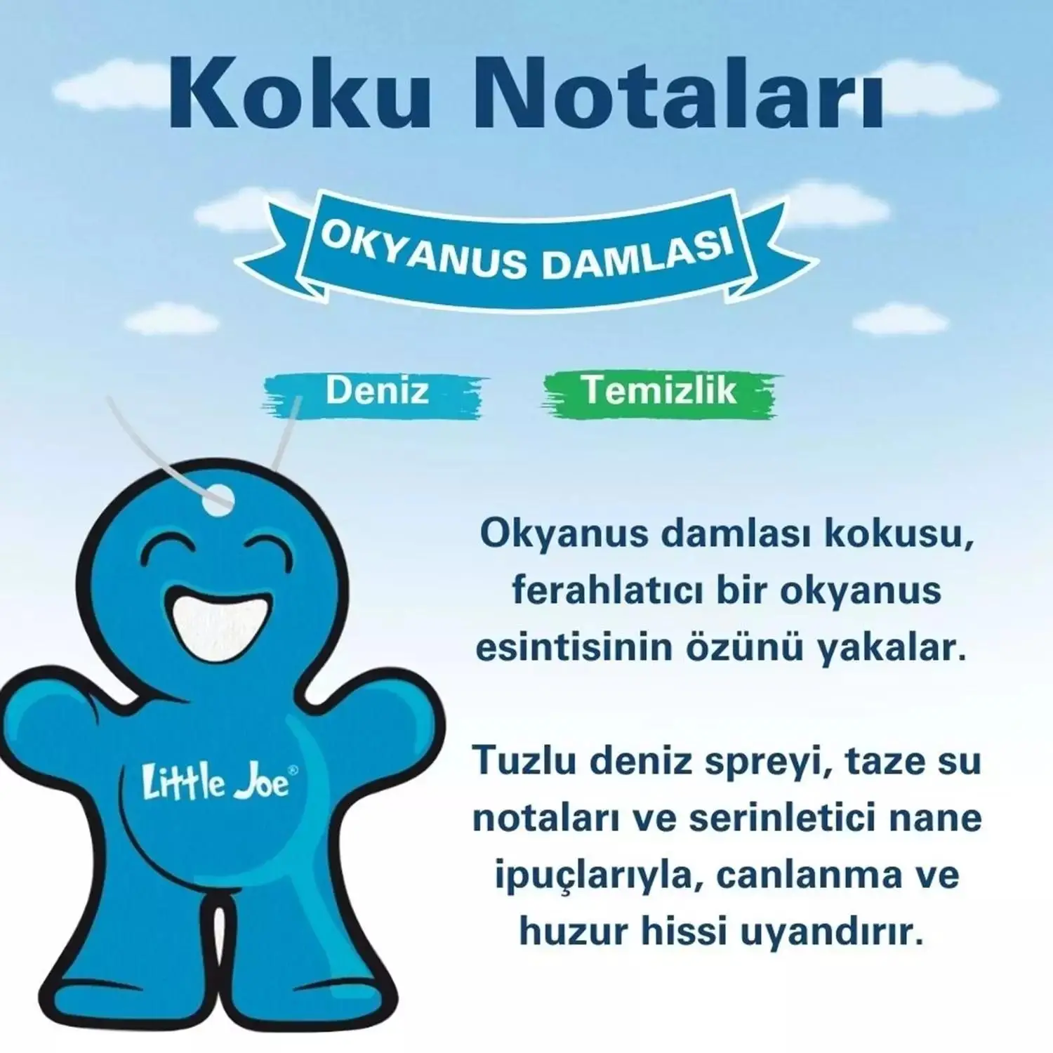 Little Joe okyanus kokusu, 30 gün kalıcı araç kokusu, deniz esintisi aroması, ferahlatıcı okyanus kokusu, alkol içermeyen karton koku.