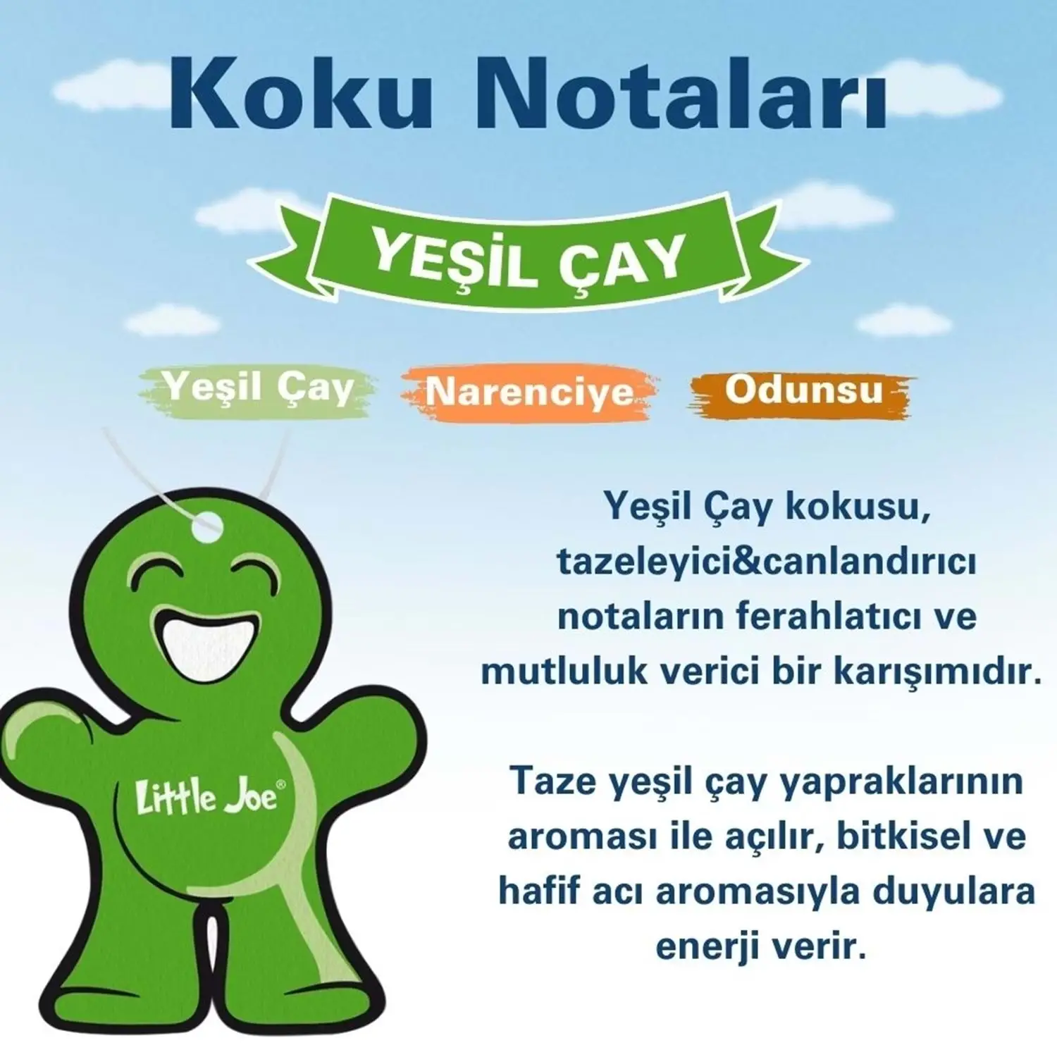 Little Joe yeşil çay kokusu, uzun süreli doğal koku, araç için yeşil çay aroması, zarif asma karton koku, doğal yeşil çay esintileri.